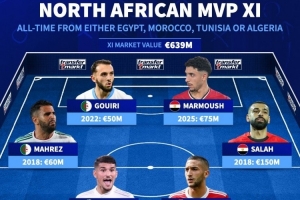 北非歷史身價最高陣容(取球員的最高身價):