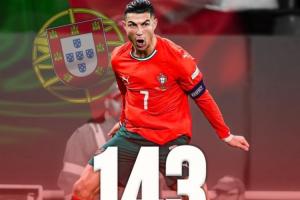 C羅國(guó)家隊(duì)生涯225場(chǎng)打進(jìn)143球,繼續(xù)領(lǐng)跑?chē)?guó)家隊(duì)歷史射手榜,領(lǐng)先第二梅西29球!
