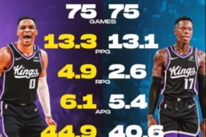 威少上賽季出戰(zhàn)75場,場均13.3分4.9板6.1助攻,三項(xiàng)命中率44.9/32.3/66.1%
