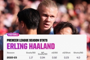 哈蘭德本賽季創(chuàng)造英超生涯新高的數(shù)據(jù):