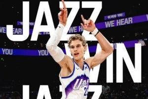 賽后爵士官方發(fā)布贏球海報,封面為馬爾卡寧,姿勢非常妖嬈。球隊另一內(nèi)線努爾基奇則在社媒上轉(zhuǎn)發(fā)了這個海報。