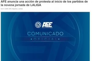 聲明寫道:AFE在西甲各隊(duì)隊(duì)長(zhǎng)的支持下宣布,在西甲第9輪所有比賽開賽前進(jìn)行抗議,以表達(dá)對(duì)西甲缺乏透明度、缺少對(duì)話和未能保持一致性的不滿,特別針對(duì)在美國(guó)舉辦比賽的決定。