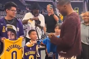 威少給小球迷的球衣簽名,簽了雷霆和火箭的唯獨(dú)略過(guò)了湖人的。