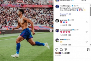賽后阿勞霍也在社媒曬出進(jìn)球后脫衣慶祝的照片,配文寫(xiě)道:“永遠(yuǎn)拼盡全力并堅(jiān)持到最后一刻,加油巴薩!”
