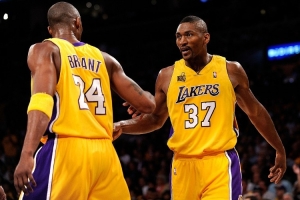 2010年6月17日,湖人和凱爾特人在總決賽中迎來(lái)生死戰(zhàn)。比賽到第四節(jié)雙方殺得難解難分,還剩1分鐘時(shí)科比傳球給阿泰斯特,后者投進(jìn)了鎖定勝局的三分,幫助球隊(duì)最終捧起總冠軍獎(jiǎng)杯。是役,科比拿下23分,阿泰斯特貢獻(xiàn)全隊(duì)第二高的20分。綠軍雖然首發(fā)五虎全部得分上雙,但還是遺憾落敗。