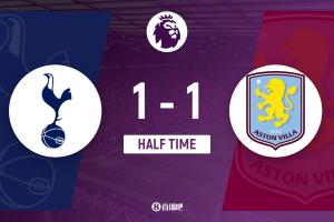 體育資訊10月19日訊 北京時間21:00,英超第8輪熱刺vs阿斯頓維拉,比賽在新托特納姆熱刺球場打響!上半場,本坦庫爾破門;庫杜斯進(jìn)球被吹越位!羅杰斯半場前世界波扳平!半場結(jié)束,熱刺暫時1-1維拉。