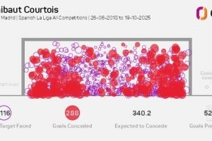 Opta指出,2018-2019賽季庫(kù)爾圖瓦加盟皇馬以來,預(yù)期失球340.2粒,而去掉烏龍球的實(shí)際失球?yàn)?88粒,這意味著庫(kù)爾圖瓦阻止了52.2粒失球,五大聯(lián)賽門將同期最多。