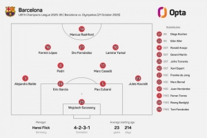 體育資訊10月22日訊 北京時(shí)間今天0點(diǎn)45,歐冠聯(lián)賽階段第三輪巴薩對(duì)陣奧林匹亞科斯,此役雙方首發(fā)已經(jīng)公布。