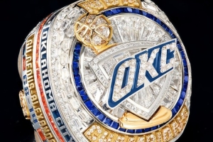 雷霆冠軍戒指:14K白金與黃金打造 鉆石鑲嵌球員號(hào)碼&內(nèi)嵌副戒