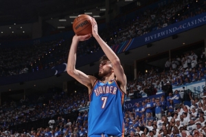 雷霆球員霍姆格倫在杰倫-威廉姆斯缺陣、亞歷山大上半場(chǎng)表現(xiàn)不佳的情況下?lián)纹鹎蜿?duì),以超高效率幫助球隊(duì)咬住比分。