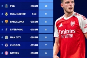 體育資訊10月23日訊 德國轉(zhuǎn)會(huì)市場(chǎng)更新了五大聯(lián)賽球員的最新身價(jià),全球身價(jià)前100名的球員中,阿森納和巴黎圣日耳曼均有10人,兩隊(duì)可以說囤積了非常多的天才球員。