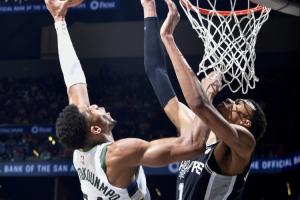 來自希臘的揚尼斯-阿德托昆博首戰(zhàn)出場26分45秒,26中16,其中三分3中1,罰球7中4,得到37分14籃板5助攻,正負(fù)值+10。