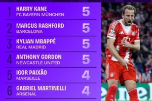 體育資訊10月23日訊 本賽季歐冠聯(lián)賽階段已戰(zhàn)罷3輪,Squawka統(tǒng)計了到目前為止的參與進(jìn)球榜,拜仁前鋒凱恩、巴薩攻擊手拉什福德、皇馬的姆巴佩以及紐卡邊鋒安東尼-戈登均參與5球。