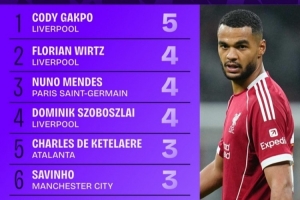 體育資訊10月23日訊 本賽季歐冠聯(lián)賽階段已戰(zhàn)罷3輪,Squawka統(tǒng)計了到目前為止創(chuàng)造絕佳機會榜單,加克波5次第一,維爾茨等3人4次分列二至四位。