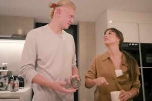 和女友一起烹飪時(shí),場(chǎng)上兇猛的哈蘭德展現(xiàn)出了溫柔的一面。兩人是小時(shí)候在挪威Bryne當(dāng)?shù)厍嘤?xùn)學(xué)院效力時(shí)認(rèn)識(shí)的,哈蘭德形容伊莎貝爾的球風(fēng)像吉格斯,有著同樣犀利的左路突破和精準(zhǔn)傳中。兩人互相調(diào)侃時(shí),哈蘭德顯得很開心。伊莎貝爾嘲笑他缺乏盤帶能力,并說她最初喜歡的是他的好朋友。