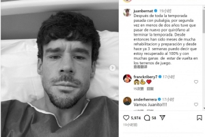 體育資訊10月24日訊 西班牙32歲左后衛(wèi)貝爾納特更新社媒動態(tài),表示自己從傷病中康復。