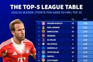 體育資訊10月25日訊 《轉(zhuǎn)會(huì)市場(chǎng)》統(tǒng)計(jì)了本賽季五大聯(lián)賽球隊(duì)的場(chǎng)均拿分情況,拜仁、皇馬、巴薩、阿森納分列前四。