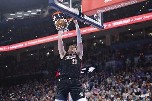 王猛:“斯普利特先要把克林根拿上場,克林根已經(jīng)來到替補(bǔ)席前了。就是從教練組的這個培養(yǎng)人員來看呢,克林根也是個年輕人。第二個賽季,比小楊大一歲。”