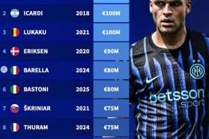 德轉(zhuǎn)盤點國米vs那不勒斯隊史身價榜:勞塔羅、奧斯梅恩分居榜首