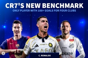 《轉(zhuǎn)會(huì)市場》統(tǒng)計(jì)顯示C羅也是唯一為4家俱樂部都能達(dá)成百球里程碑的球員: