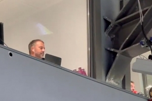 巴薩主帥弗里克由于停賽無法再場邊指揮球隊,他出現(xiàn)在伯納烏看臺上,將遠(yuǎn)程觀察比賽形勢。