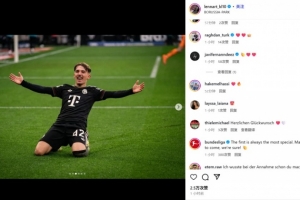德甲官方賬號也現(xiàn)身評論區(qū)鼓勵道:“處子球總是很特別!相信你未來還能進更多球。”