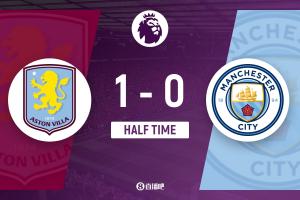 上半場傷停補時3分鐘,半場結(jié)束,曼城暫0-1維拉。