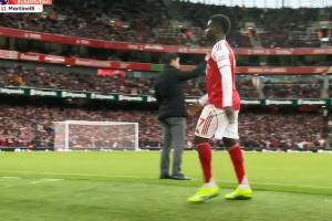 第65分鐘,馬丁內(nèi)利替補登場換下薩卡。