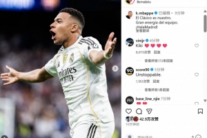 本場比賽姆巴佩破門,賽后他也在個(gè)人社媒曬出慶祝進(jìn)球照片,配文寫道:“國家德比勝利屬于我們,球隊(duì)展現(xiàn)出很棒的活力,皇馬加油!”
