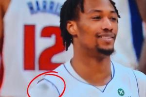 GIF-??發(fā)際線粉蹭掉了!杰倫-布朗的頭一通亂蹭 OG球衣一大團黑