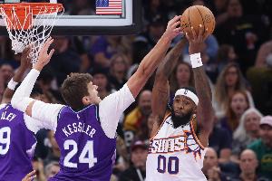 此役,爵士中鋒凱斯勒打出上佳表現(xiàn),進(jìn)攻高效,防守給力。