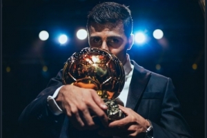 曼城曬出羅德里親吻金球獎(jiǎng)的照片,并寫(xiě)道:“去年今日,羅德里成為金球獎(jiǎng)得主?!?/p>