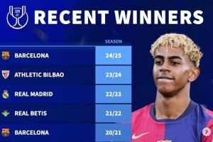 上一篇: 德轉(zhuǎn)列近10年國王杯冠軍:巴薩5次登頂,皇馬僅在2023年奪冠