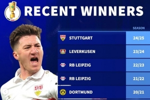 體育資訊10月29日訊 《轉(zhuǎn)會(huì)市場》統(tǒng)計(jì)了近10年德國杯冠軍,拜仁3次居首但已5年未能奪冠,多特、萊比錫各2冠。