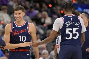 對此,快船記者Law Murray發(fā)推寫道:“在哈登、萊昂納德、祖巴茨身邊搭配博格丹/巴圖姆、瓊斯/鄧恩的8.5分鐘里,勇士占據(jù)絕對優(yōu)勢,比分是27-14。之后快船換上了科林斯和大洛?!?/p>
