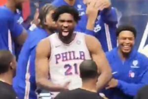 據(jù)記者報道,一名奇才球迷整場比賽都在對著76人隊的替補席噴垃圾話。76人完成逆轉(zhuǎn)后,以恩比德為首的76人替補席對他進(jìn)行了反擊。