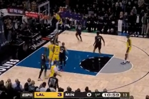 GIF-八村塁黃油手空位接球出界了